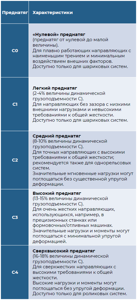 Depending on the preload value, VOLTECH profile rail guides are divided into different classes during manufacturing.